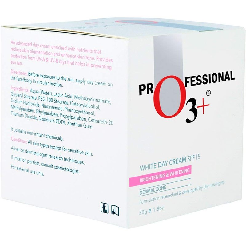 o3+ SPF 15 Day Cream - 50ml (3 inch), White 03+ is a professional range of Skin Care treatment, which has been designed, developed and formulated in Hong Kong. It is been widely used by qualified Dermatologists, Skin & Beauty Therapist. The product is specially designed to suit the skin care treatment, under the supervision of dermatologists and the beauty therapist. 03+ assures to reinvent your skin.