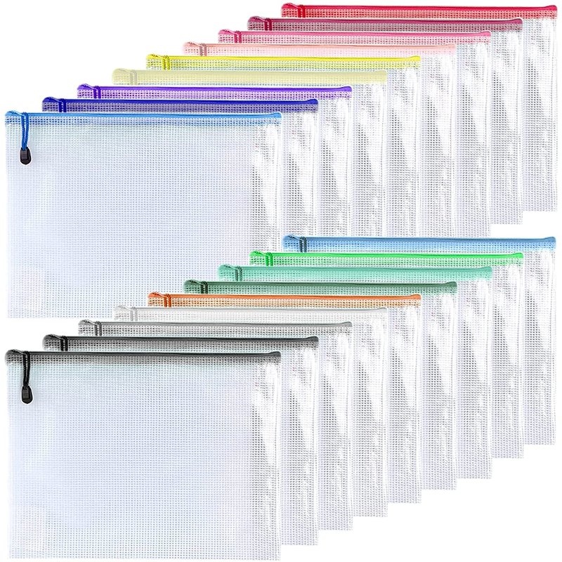 Oaimyy-18 Pcs,3"x 5",Plastic Mesh Zipper Pouch Document Folders Bag Zipper Zip File Folders for Office Supplies, Travel,Organizing Storage (3"x 5" inch, Multicolor)