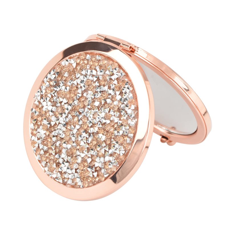 The outer shell of the mirror is made of metal. When holding it in your hand, you will feel that its weight and texture. The mirror's shell surface is covered with small sparkling acrylic diamonds , which are compactly arranged and complement each other. This makes our mirror dazzle under sunlight or artificial light. Shiny things always attract people's attention quickly. 【Foldable Design with Snapper】You can easily open the mirror at the press of the button. It can also be extended to any angle within 180 degrees for greater comfort.