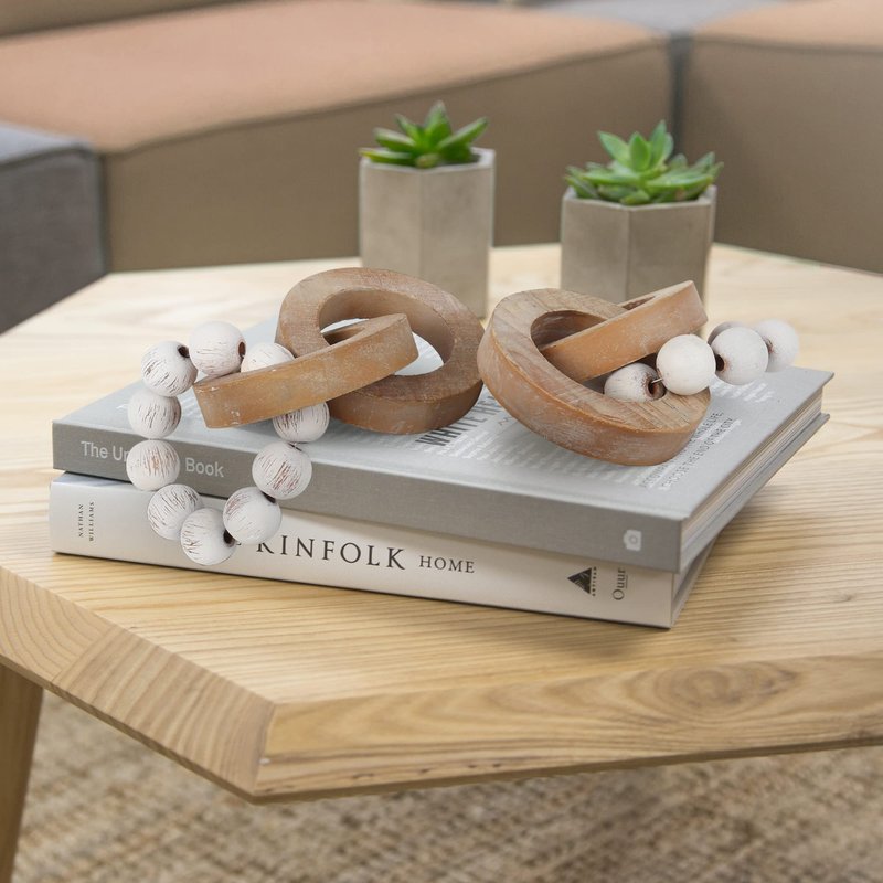 - [WOOD CHAIN LINK DECOR] Wooden Chain Link is great as coffee table decor. Can be placed on trays, coffee tables, bar carts, or even hung on a wall, also. You can display these lovely items all around your home! Matches well with farmhouse, boho, country, or modern home decor.