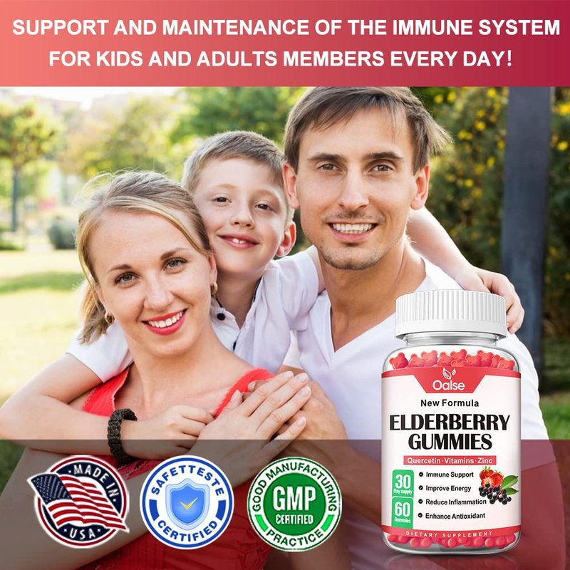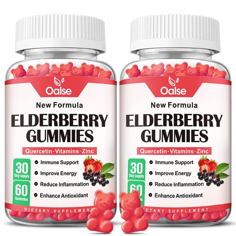 OALSE Organic Elderberry Gummies for Kids and Adults - Sambucus Black Elderberry Gummies + Zinc and Vitamin C & D3 Support Immune Defense Muscle Strength Dental Health [60 Count (Pack of 2)]