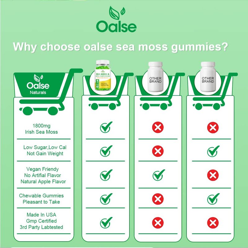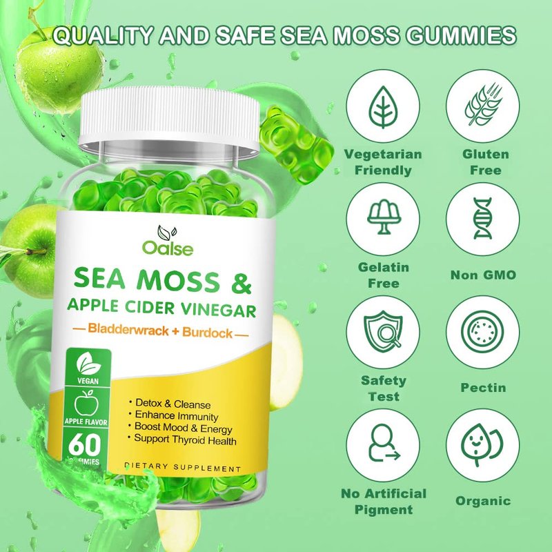 - ✨【Delicious Gummies】Capsules and powders have become old newspapers, and today vegan sea moss gummies are a better way to supplement your diet, tasty apple flavor, easy to chew and swallow, 2 gummies per serving, 30 servings per bottle, a month's supply, perfect for your and your family's daily dietary supplements!