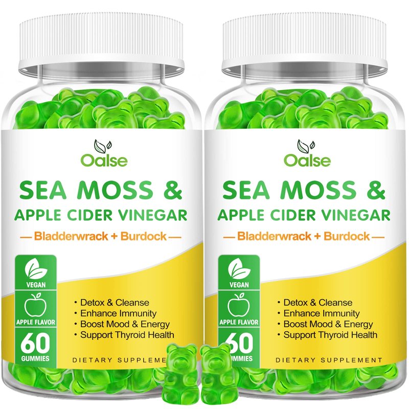 OALSE Organic Sea Moss Gummies - 1800mg Irish Sea Moss + 1200mg Bladderwrack + 240mg Burdock Root + 240mg Apple Cider Vinegar - Supports Immune & Digestion Health [60 Count (Pack of 2)]