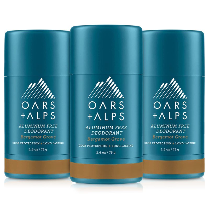 Oars + Alps Aluminum Free Deodorant for Men and Women, Dermatologist Tested and Made with Clean Ingredients, Travel Size, Bergamot Grove, 3 Pack, 2.6 Oz Each