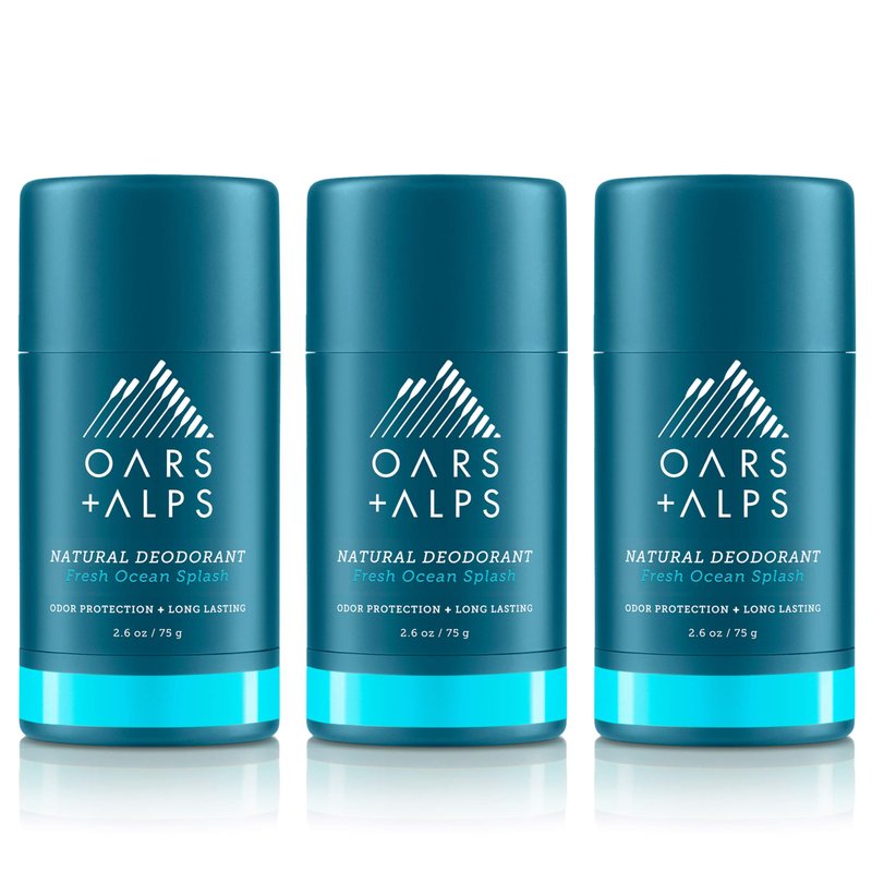 Oars + Alps Aluminum Free Deodorant for Men and Women, Dermatologist Tested and Made with Clean Ingredients, Travel Size, Fresh Ocean Splash, 3 Pack, 2.6 Oz Each