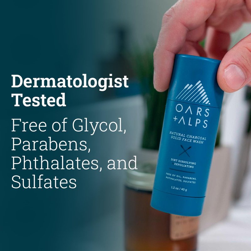 Oars + Alps Face Wash with Activated Charcoal, Exfoliating Facial Cleanser Fights Blackheads, Travel Size, Vegan and Gluten Free, 1.2 Oz
