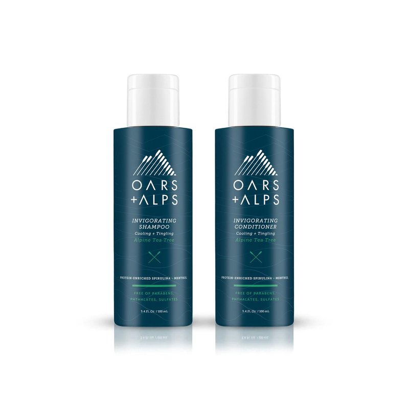 Oars + Alps Men's Sulfate Free Hair Shampoo and Conditioner Set, Infused with Witch Hazel and Tea Tree Oil, Alpine Tea Tree, Travel Size 3.4oz Each