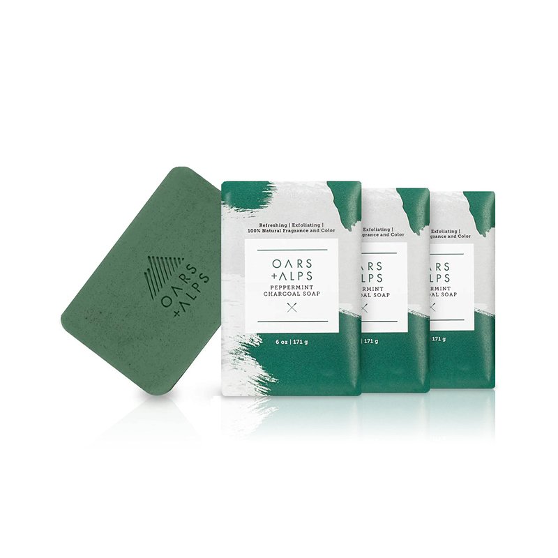 Oars + Alps Peppermint Charcoal Exfoliating Men's Bar Soap, Dermatologist Tested and Made with Clean Ingredients, Travel Size, 3 Pack, 6 Oz Each
