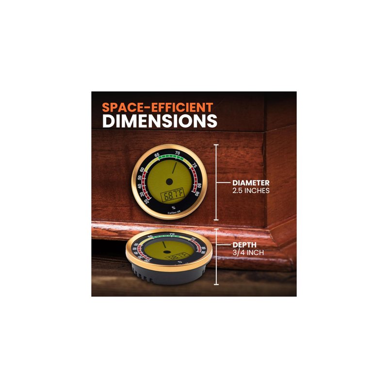 In the world of aficionados and connoisseurs, precision is paramount. Step into an exquisitely designed sanctuary, a space where time stands still, and every item's narrative unfolds. The Digital Hygrometer and Humidity Sensor becomes your steward, ensuring each moment spent inside is one of perfection. With its precise humidity tracking and calibration precision, you possess the conductor's baton, fine-tuning the harmony of humidity and temperature. Its resilient, sturdy design stands as a fortress, unwavering against time's tests. The intuitive data color coding, a master storyteller, turns every glance into a new chapter in the life of your collection. This is where luxury meets precision, and class finds its timeless companion. With humidity and temperature readings, Fahrenheit/Celsius options, and the ability to gauge between 20-90% Relative Humidity (RH), this 2.25" diameter and 0.7" depth hygrometer provides the connoisseur with complete control over the storied environment of their collection.