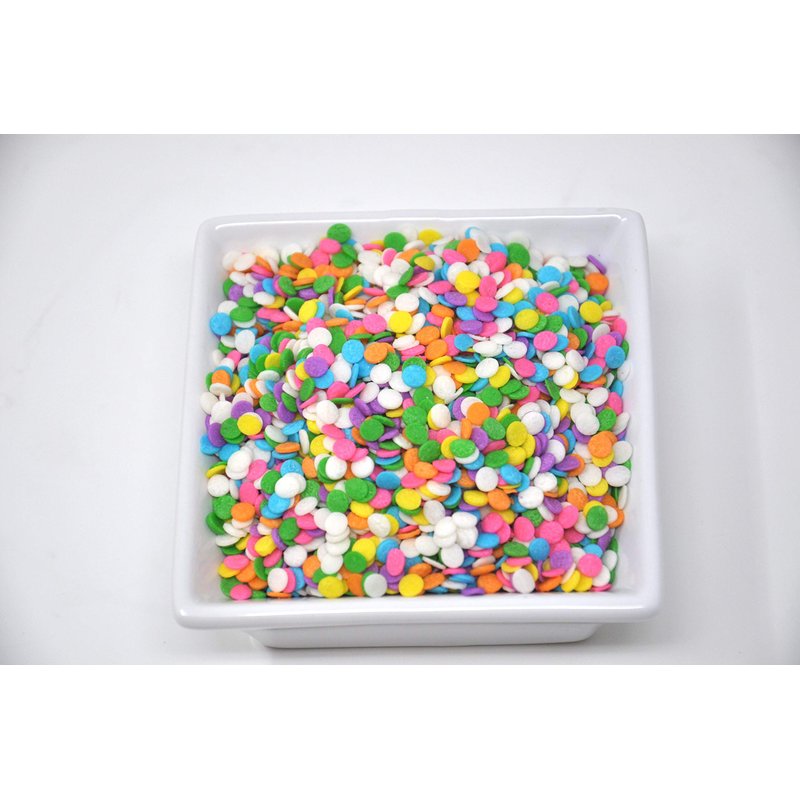 - Edible Confetti Sprinkles mix will turn any cake or cookie into a festive party treat!