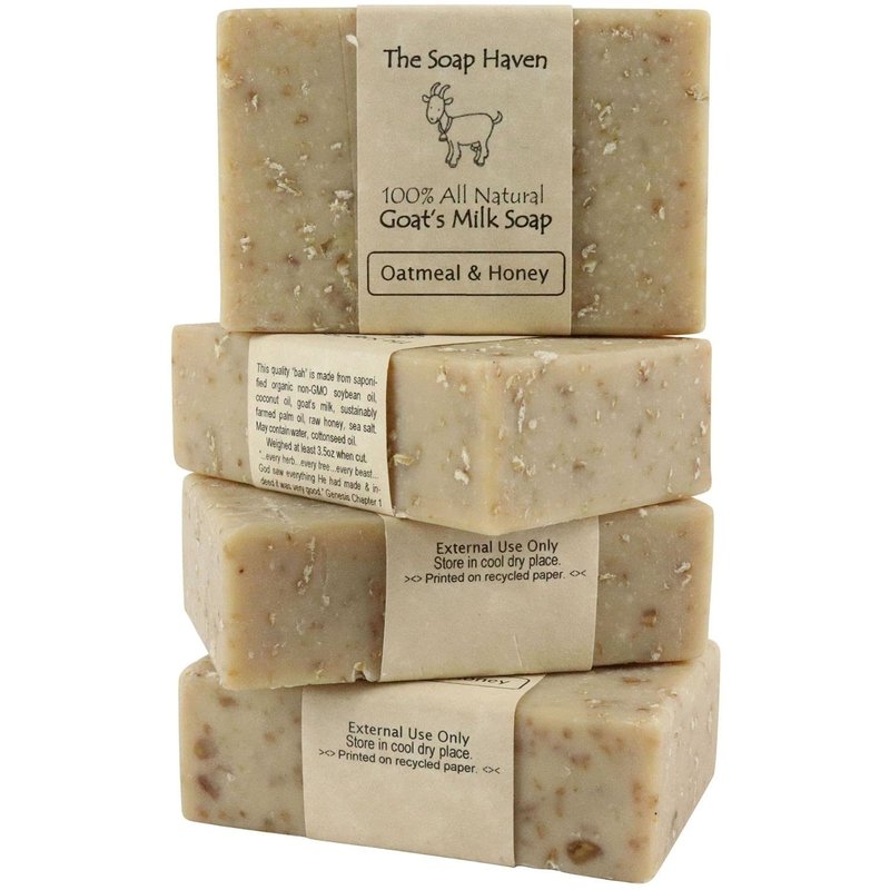 Oatmeal Soap - 4 Oatmeal & Honey Goat Milk Soap Bars. All Natural, Unscented Soap, SLS Free, NO Parabens, Handmade in USA.