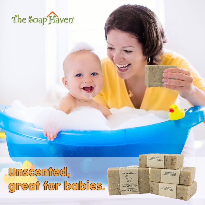 Our premium 100% natural unscented oatmeal and honey goat milk soap is ideal for all skin types.