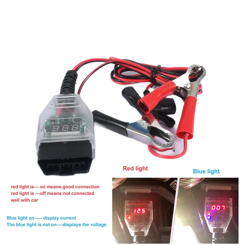 OBD II Car ECU Memory Saver Cable with 2 Alligator Clips, OBD II To 12V Vehicle ECU Emergency Power Supply Cable Battery Connector Replacement Kit, Auto Car Computer Power-Off Memory Saver, OBD2 Car Battery Tester Memory Saver, Preserve Vehicle Data Code Electronic Preset, Battery Change Saver Memory Vehicle ECU Emergency Replacement, 12V Digital Display OBD II Battery Leakage Detective Kit with 5A Fuse Note: In The Process Of Replacing The Battery, Avoid Using High-Current Electrical Appliances On the Vehicle, Such as seat heating, headlights, and air conditioning. Do not open all four doors to avoid excessive current. When the current is accidentally greater than 5A during the process of connecting the tool, the tool’s own fuse will be blown, and the tool will not have any display or indicator light. At this time, you need to face the bright light and observe whether the fuse is sufficient After the fuse is blown, the tool is back to normal after replacing the fuse. 1. Powered By Any Jump Starter With A 12V Outlet Into An OBD II Memory Saver. 2. Interface Connector Between A 12V DC Power Source And Vehicle's OBD II Port. 3. Preserves Vehicle Codes And Electronic Presets.It Can Prevent Information Loss When The On-Board Computer Is Powered Off, And Retain The Stored Dashboard Information, Audio, Storage Seat, Digital Clock Etc. Of The Car Computer. 4. Replacing A Car Battery On Older Vehicles Used To Be Simple!! You Unhook The Old Battery And Install The New One. Late-Model Vehicles, However, Rely On Computers That Operate Everything From The Stereo To The Transmission. If Power Is Lost To The Computer, The Settings Are Lost And Have To Reset To Default. That Means The Vehicle May Feel Different When Driven, And You May Have To Enter A Security Code To Access The Stereo. Using This Simple Memory Saving Device When Replacing Your Car Battery Will Help You Avoid These Problems. 5. This Device Can Work With Any 12V DC Power Source, Including Jump Starter, DC 12V Lead-acid Battery, Or Another Car’s DC 12V Power Outlet. 4.Reliable Upgrade Design And Process Have Been Improved. After Testing, The Output And Input Power Are Normal, Please Make Sure The Product Is Qualified. Odorless And Non-Toxic Ingredients, Soft And Wear-Resistant, Not Entangled, D`urable. Specification Material: ABS Colour: Silver Case,Black Cable Voltage: 12V Current: 30A Cable length: 1.3m Weight: 0.3 (kg) Packing List 1*OBD II Car ECU Memory Saver Cable with 2 Alligator Clips