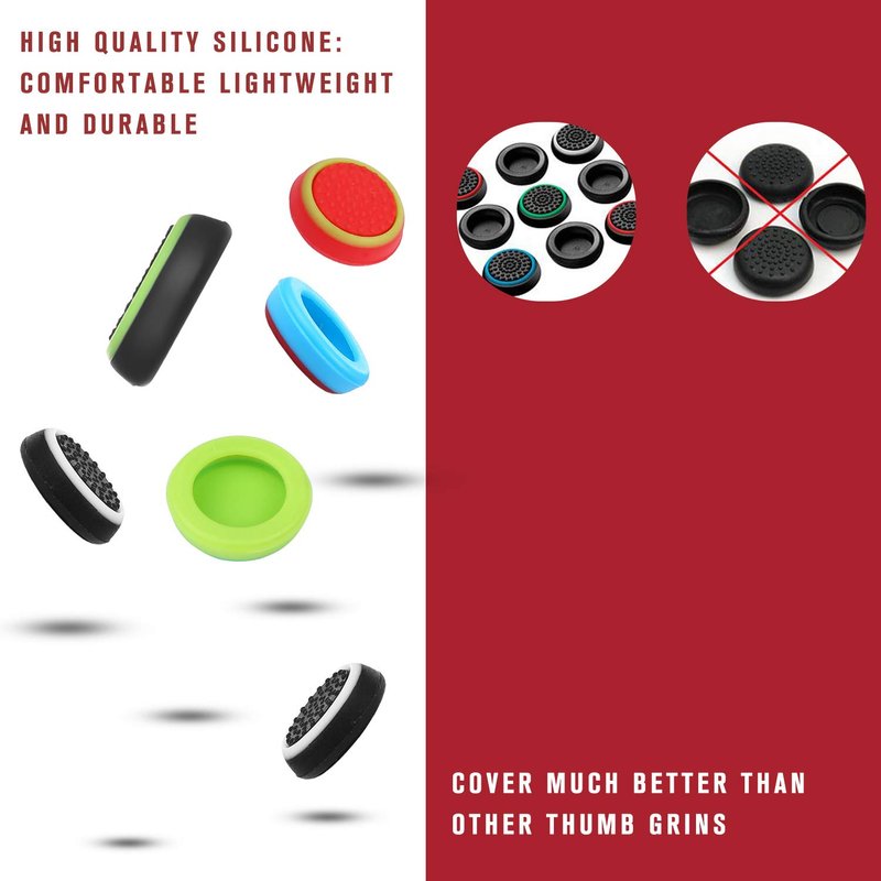 - ENHANCE GAMING EXPERIENCE: Personalize and enhance your gaming experience with our upgraded silicone thumb grip caps. With the Anti-skid function, you will no longer have to worry about slipping off the analog stick of your controllers, and provide more accuracy and sensitivity, give you the most complete game pleasures.