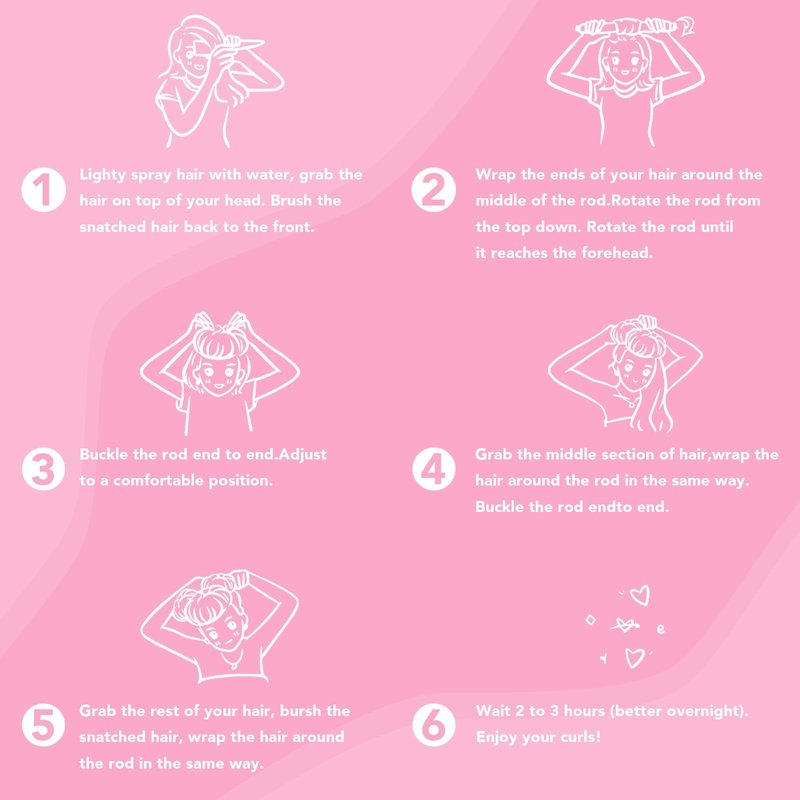 - 【Simple to Use】After shampooing, blow dry until 80% dry. Comb your hair and divide it into three areas from front to back. Gently wrap your hair around the curling rods, then tie it with the silk scarf. After a night's sleep, you will have a naturally beautiful curly hair.