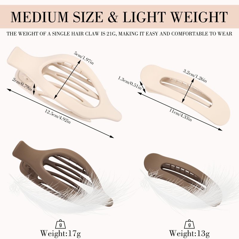 - Comfortable to Wear: The surface of the flat claw clip is made of matte material with beautiful color, very light weight, comfortable to wear for a long time.