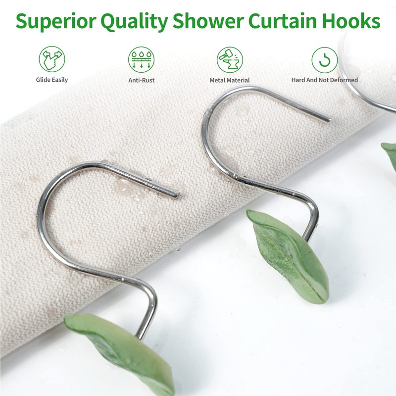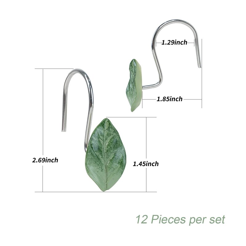 OBERITOL 12PCS Shower Curtain Hooks, Decorative Shower Curtain Hooks, Rust Proof Stainless Steel Shower Curtain Hooks for Bathroom, Bedroom Room Decor (Leaves)