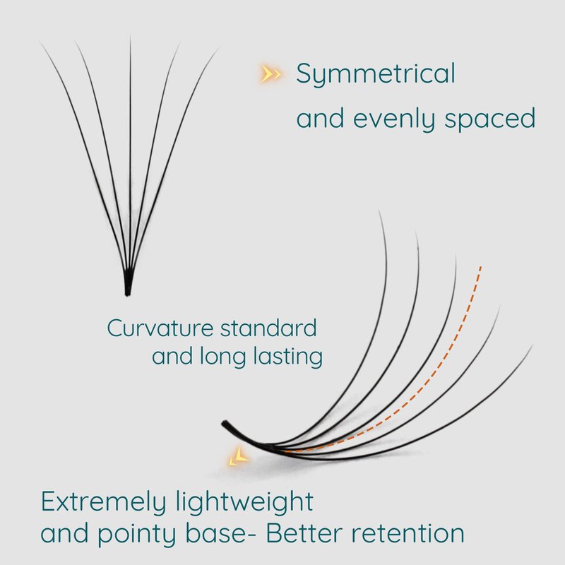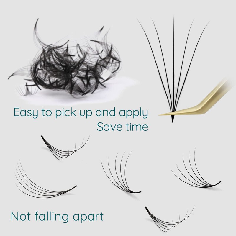 - EASY TO USE: Loose fans lash extensions are easier to use while working compared to normal tape lash trays. You can quickly pick up and apply eyelash fans with tweezers,the Promade fans are not attached to the tape, the premade fans won’t fall apart, moreover eyelashes are clean without residue.