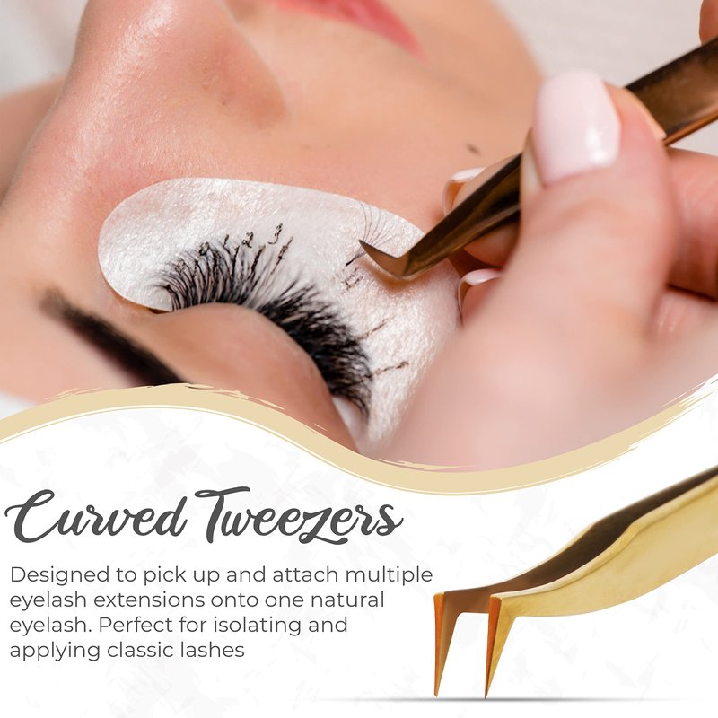 Obiko Eyelash Extension Tweezers Set 2 Piece Golden Straight And Curved Lash Tweezer Set For Women,Ideal For Precise Application And Correction