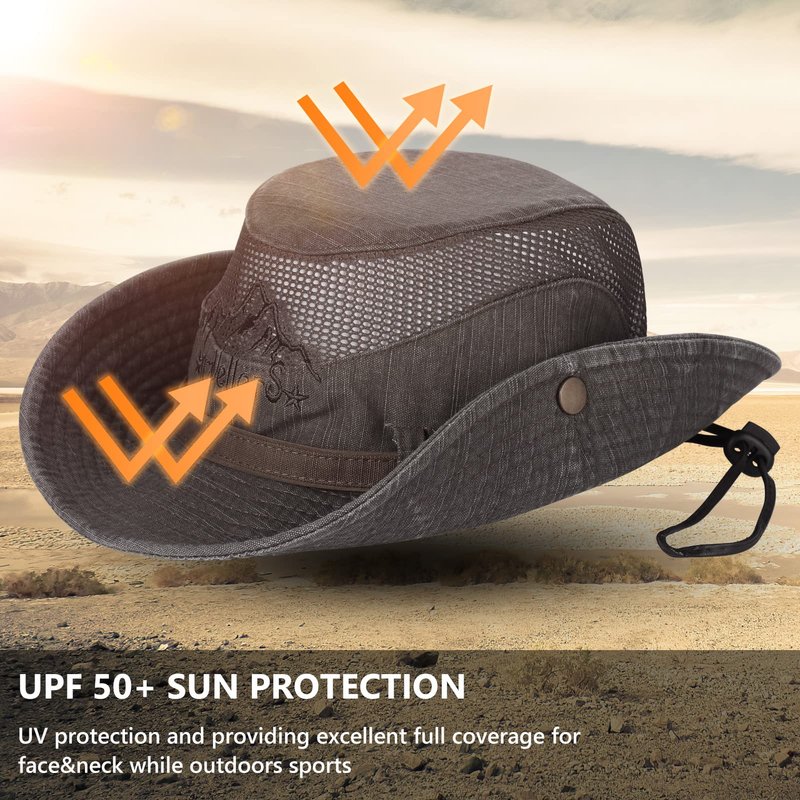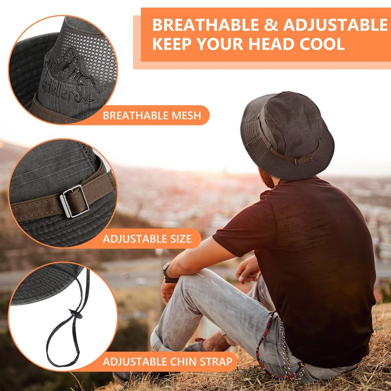 - 【Breathable & Adjustable Chin Strap】-Stay cool, as mesh panels ensure your head stays ventilated even on the hottest and most humid days; Adjustable chin strap ensures a secure fit and won't blown off when it gets windy or rainy.