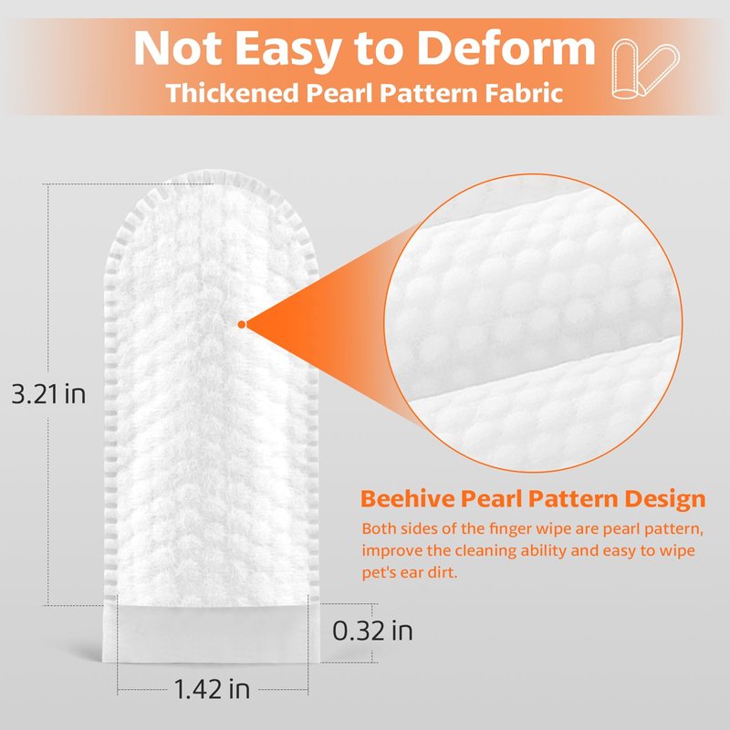 Beehive Pearl Pattern Design: Both sides of the finger wipe are pearl pattern, improve the cleaning ability and easy to wipe pet's ear dirt.