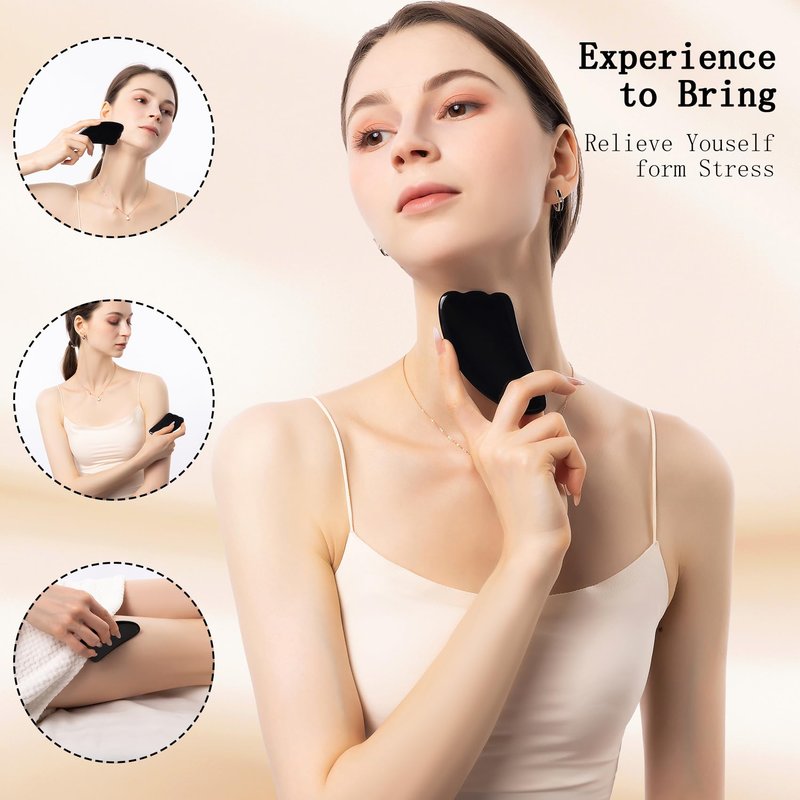 - Fits Full Body - Gua Sha effectively relaxes muscle, smoothens facial skin, reduces dark circles/wrinkles, and enhances skin tone, rejuvenating you. Our Gua sha tool set comfortably covers all body parts, satisfying your overall scraping requirements. Gentle massage offers decompression & relaxation benefits.