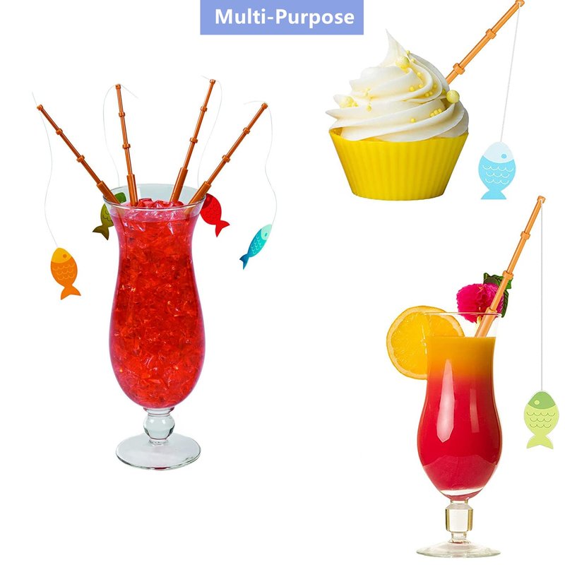 - Safe material:Made of high quality plastic, these mini fishing rods are safe, non-toxic and lightweight, and the mini size fits most cakes, cupcakes or goblets.