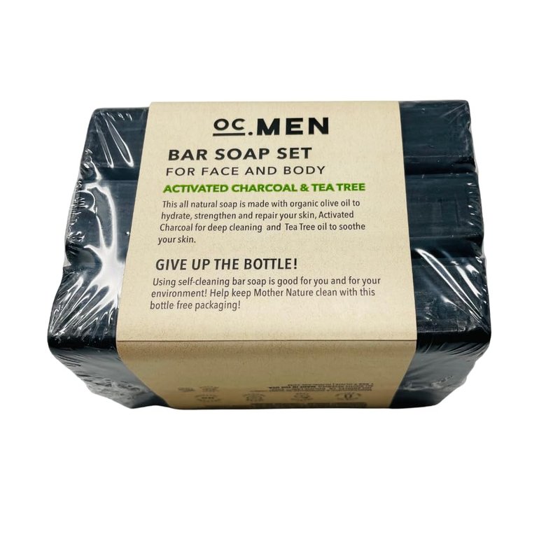 OC MEN Soap Bar 3 Pack - Natural and Organic Bar Soap for Men, Olive Oil Soap Triple Mill Soap Made in the USA (Charcoal and Tea Tree)