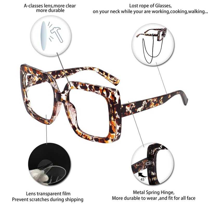 - CLEAR LENS :OCCI CHIARI reading glasses has optical,strong,durable frame and clear acrylic ,non-polarized, Rectangular lenses.The acrylic lenses are clear enough. This women’s oversized reading glasses 1.5 have A-class clear lenses which have higher precision as well ,makes the vision clear, and scratch resistant lens ,this reader glasses have 1.0x,1.25x 1.5x, 1.75x, 2.0x, 2.25x,2.50x 2.75x 3.0x 3.5x 4.0x strength for selection.The lenses can be replaced with other lenses.