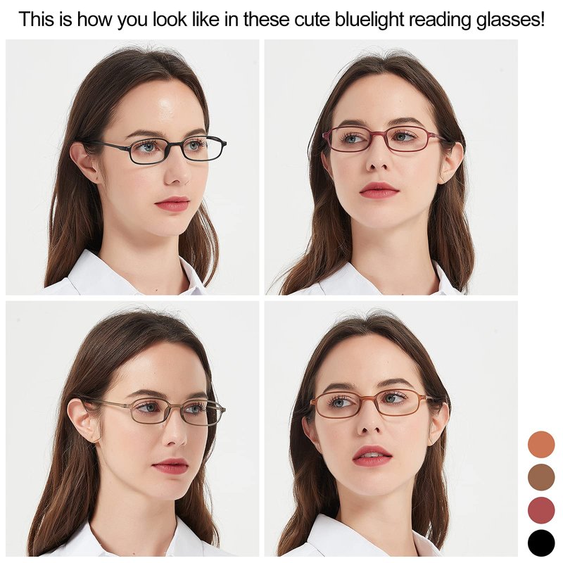 4 pairs of retro computer reading glasses women men with classic square frame are ideal for all face shape (round, square or heart-shaped)