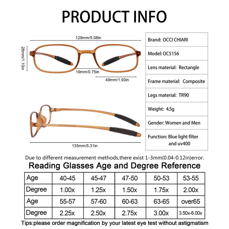 - Great Value - 4*Reading glasses, 4*Leather Pouch(worth $3), 1*Glasses rope(worth $2), 1*Glasses screwdriver(worth $2), 1*Glasses cloth(worth $1), 1*Brand box as a beautiful gift. 100% replacement or refund service, if any damage occurs to the readers +1.75, please contact OCCI CHIARI service team to solve the problem quickly and effectively.