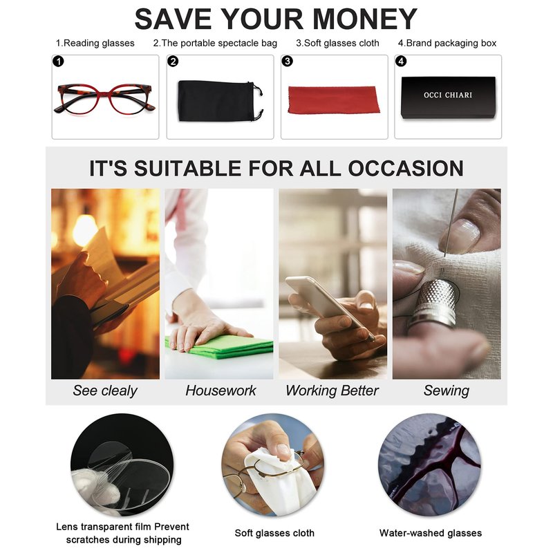 OCCI CHIARI Blue Light Blocking Glasses 2.00,Accute Magnification Lady's Readers 1.0 1.25 1.5 1.75 2.0 2.25 2.5 2.75 3.0 3.5 4.0 5.0 6.0