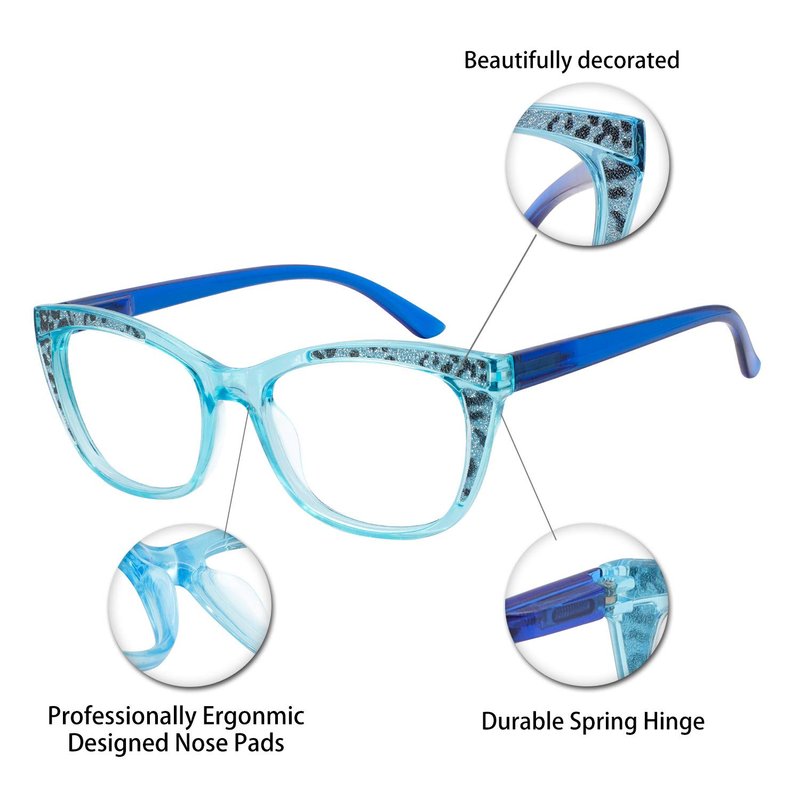 - Stylish Readers: The cateye reading glasses for women 6.0 with glitter for a fresh look, bling bling makes you look more funky and younger. You can wear them to read a book, do needlework, or use a mobile phone, computer at home, office or in bed. It’s also a great gift for mother or elder, will make you get many compliments.