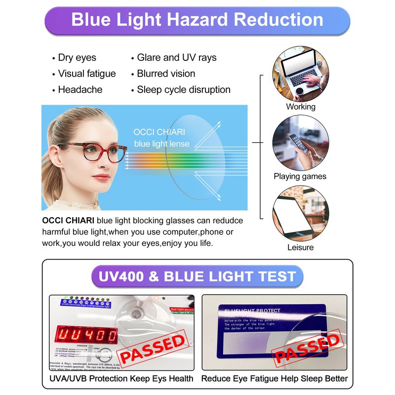 - Great VALUE: 1*Computer gaming glasses, 1*Glasses cloth & glasses bag(worth $3), 1*Brand packaging box as a beautiful gift. 100% replacement or refund service, if any damage occurs to the product, please contact OCCI CHIARI service team to solve the problem quickly and effectively.