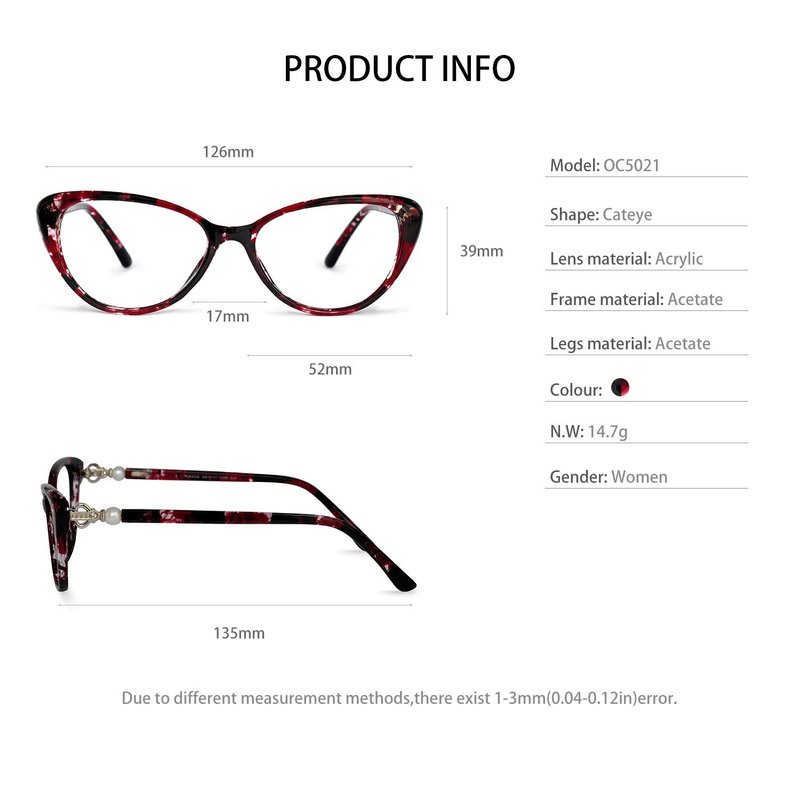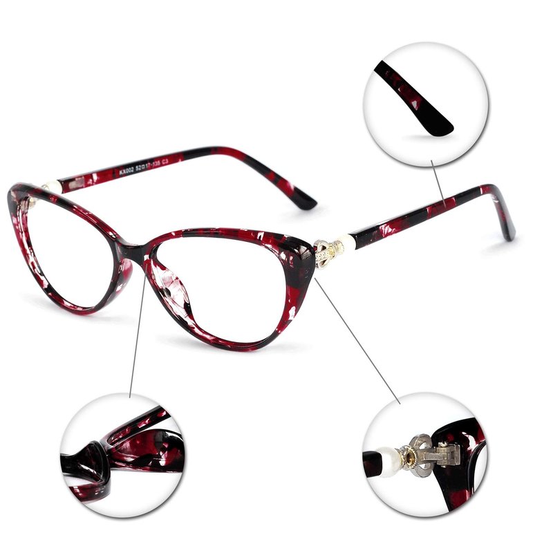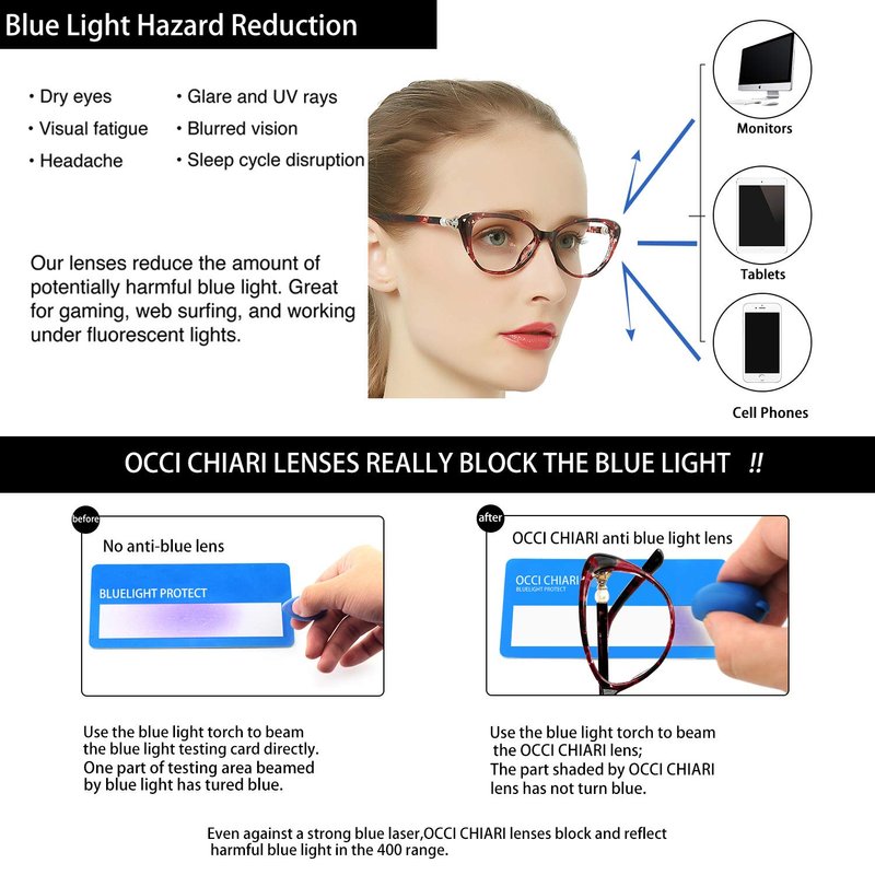 OCCI CHIARI Progressive Multifocus Women Cateye Reading Glasses Anti Blue Light Reader Spring Hinges (W+Red, 3.00)
