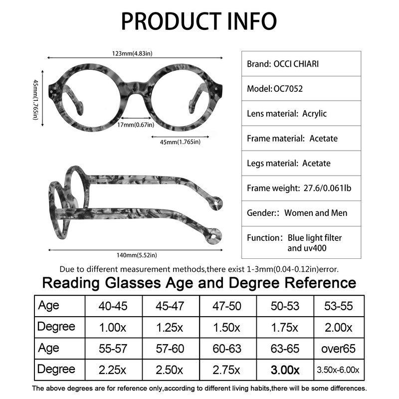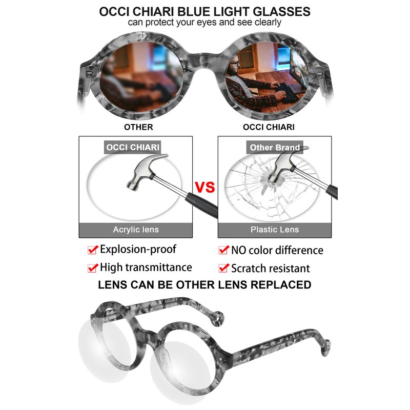 - Wear for long time:OCCI CHIARI reading glasses using life is more than 3 years after 42356 times of elastic spring hinge testing.nerd round frame make people a very stylish feeling ,make you more yuanger ,the high elastic spring leg can prevent it clip your face.The nose pads of the glasses fit the bridge of the nose, preventing glasses from slipping and imprinting the skin.The nose pads and hinges are designed to make the glasses likely to fall off when you are looking down or exercising