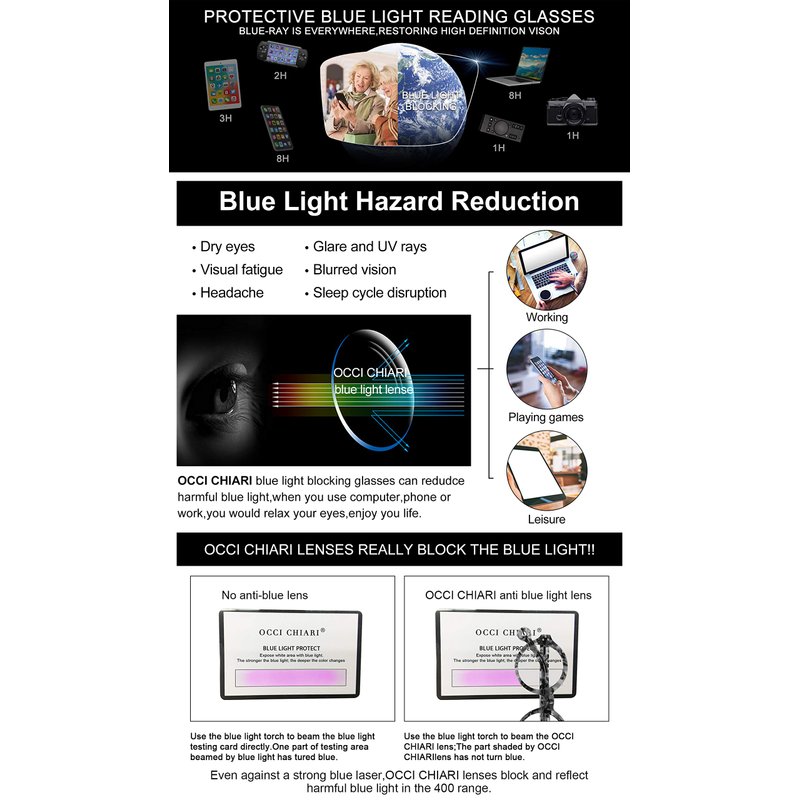 OCCI CHIARI Reading Glasses for Women 1.0 Blue light Reader for lady(1.0 1.5 2.0 2.5 3.0 3.5 4.0) Digintal Games for Eye Strain