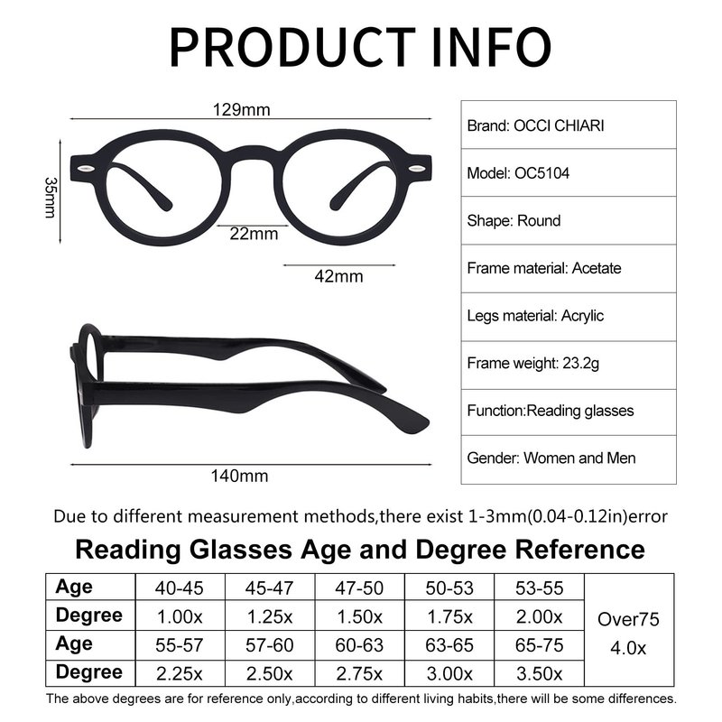 - OCCI CHIARI Reading Glasses 100% quality inspection to ensure the highest quality products, our brand and 90-day money back guarantee to ensure that you are free of any risks, if you have any questions, please contact us without hesitation!