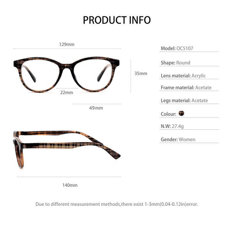 - Note:For clear use, please remove the lens film. READER DIMENSION: This Reading Glasses for Women use non-fading composite material , Lens width:49 MM(1.93IN),Bridge width:22MM(0.87IN),Arm length:140MM(5.51IN), Frame width:129MM(5.08IN).