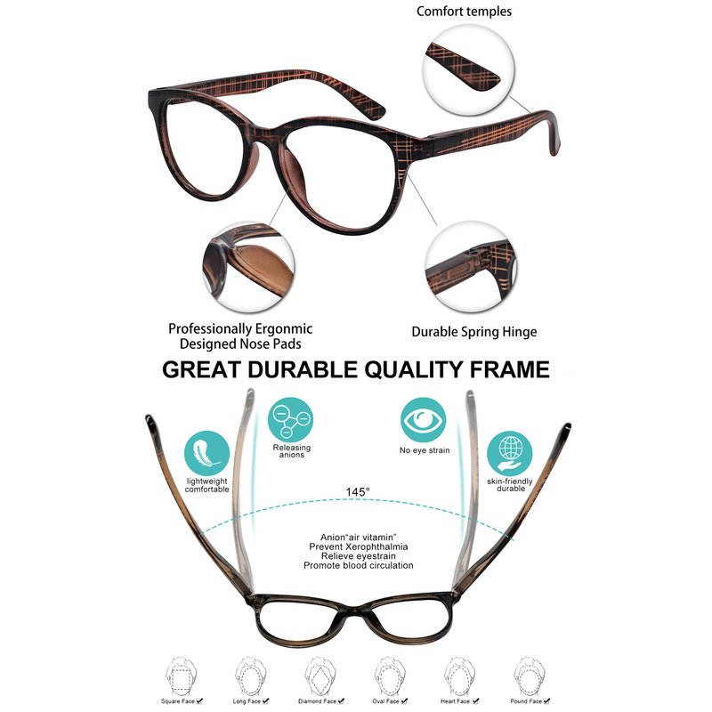 - DURABLE SPRING -This Reading Glasses for women Made with durable spring hinges and quality material insures long lasting durability .