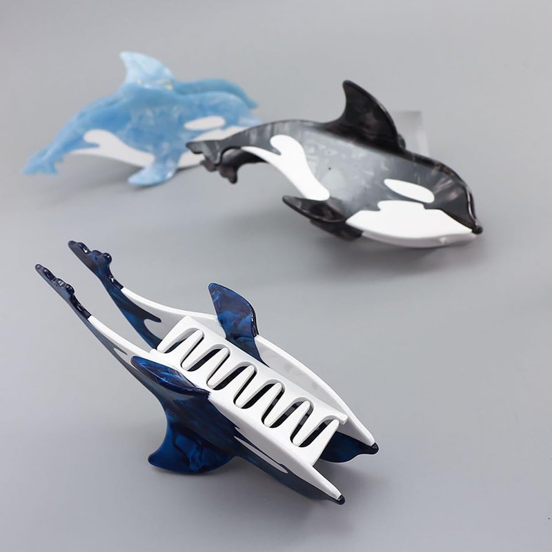 Ocean Killer Whale Hair Clip,Acetate Hair Claw,Small Hair Clips for Women,Light Blue