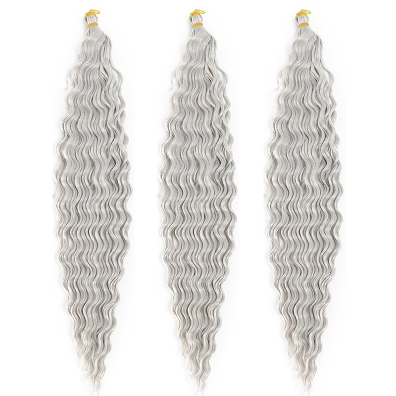 Ocean Wave Crochet Hair 22 Inch Deep Wave Braiding Hair 3 Packs Long Curly Crochet Braids Hair Extensions Light Gray