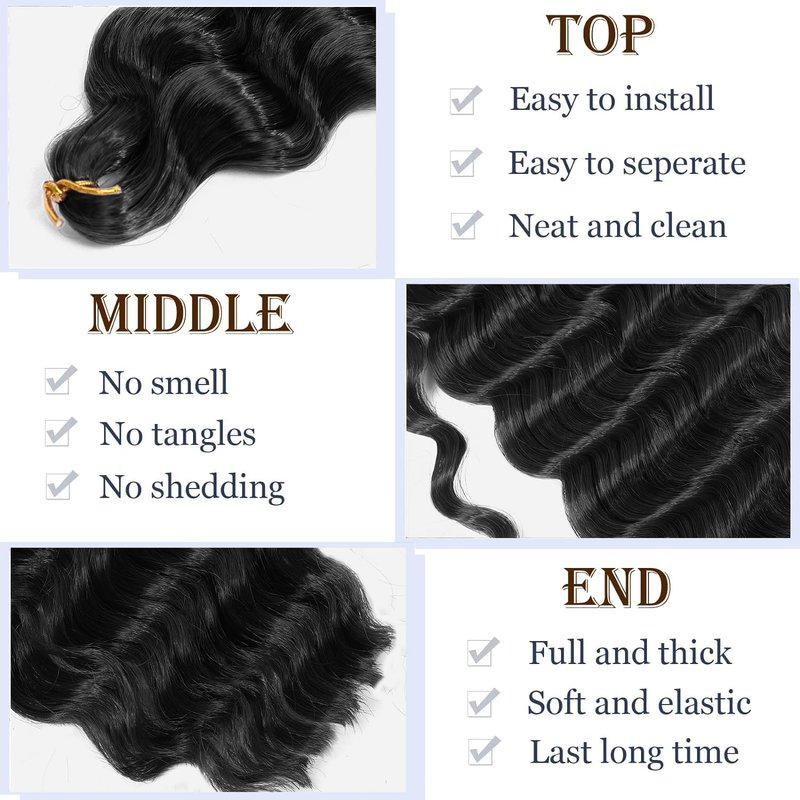 - 【More Colors】The Deep Wave Crochet Hair Comes in Multiple Colors,Giving You More Choices.You Can Wear Different Colors of The Water Wave Crochet Hair On Different Occasions to Show Your Charm.