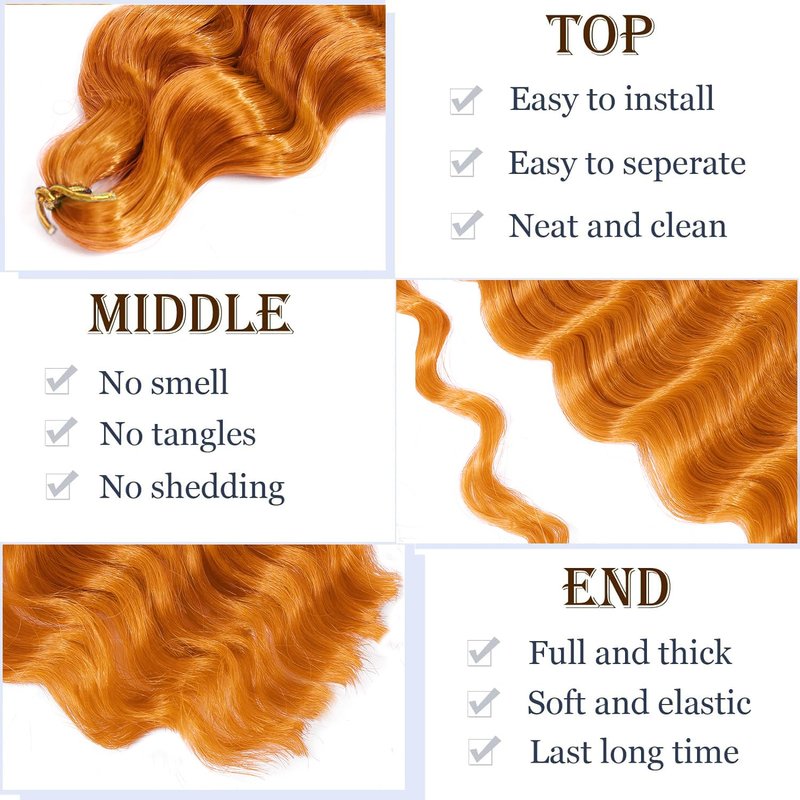 - 【Hair care】Spray water or curling conditioner before installation to keep your deep wave crochet hair soft and long lasting to reduce tangles. Recommended to sleep with a scarf over your hair to avoid tangles. Using foam mousse and a wide toothed comb, curly hair will be better and more lasting.
