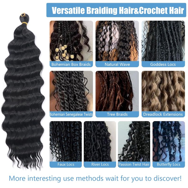 - 🍀【Versatile Crochet Hair& braiding hair】ocean wave crochet hair can be used for goddess box braids crochet hair, passion twist hair,butterfly locs crochet hair,dreadlock extensions,dreads, knotless braids,goddess braids,add hair to soft faux locs to get goddess locs crochet hair,goddess braids,gypsy braids,twists,curly crochet hair,french curl crochet braids,ponytail,tree braids, box braids,natural wave,curly bob ect many hairstyles.And can be applied any occasions that you want.