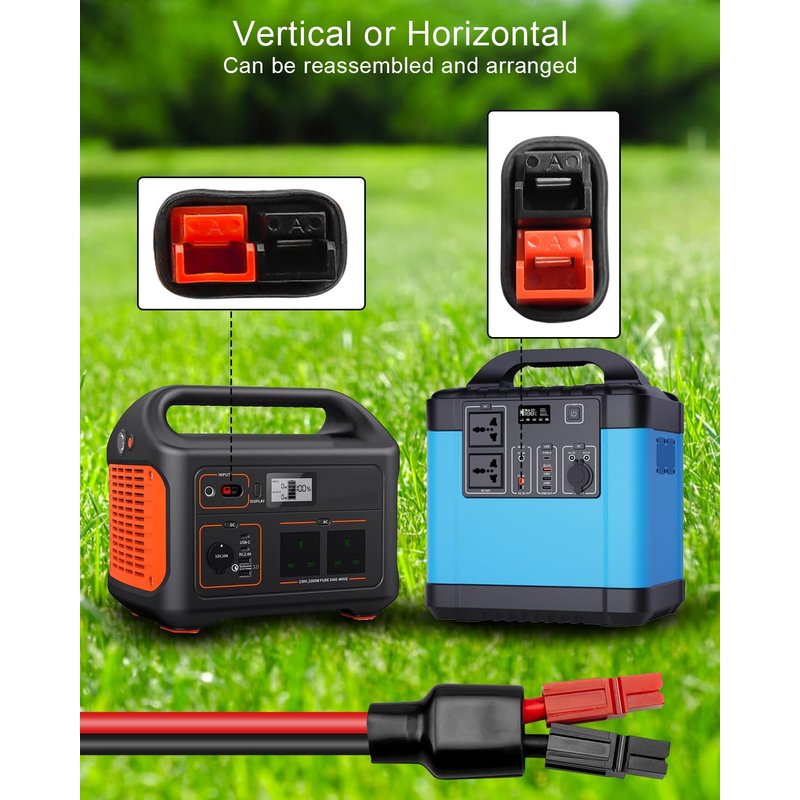 - Arrange and Reorganize Plug: The plug (red, black) connecting portable power supply can be moved up, down, left, right, and you only need to unplug plug, and connect them through buckle on the plug to reassemble and arrange them vertically or horizontally