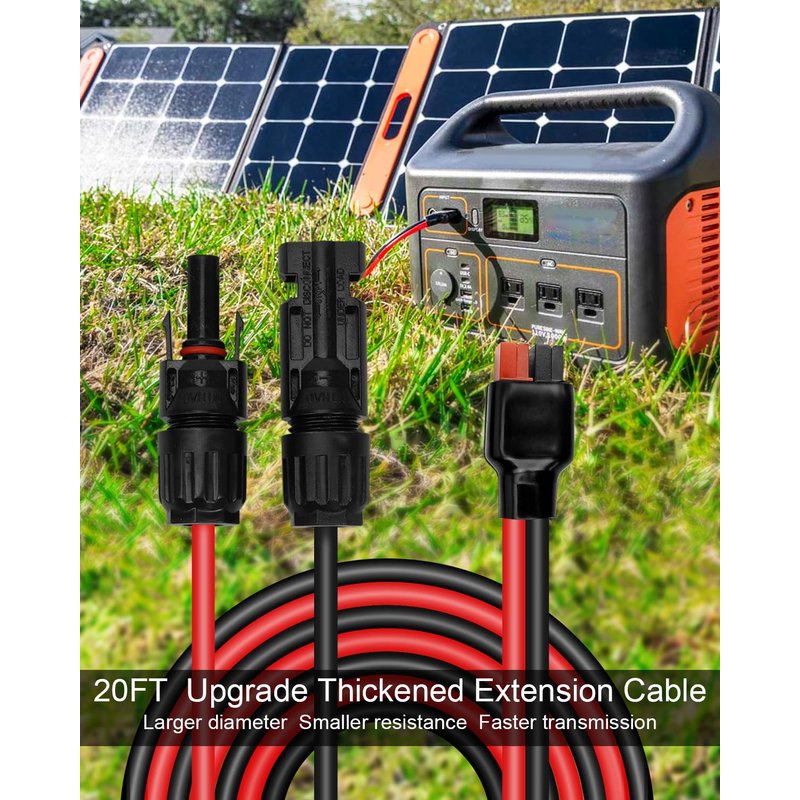 - Upgrade Thicker Extension Cable: Length: 20Ft, extended length is enough for you to use, which can effectively extend distance between solar panel and generator, making it more convenient to use; Specification: 10AWG, compared to 12awg/14awg, with larger diameter, smaller resistance, which can minimize power loss and greatly improve power transmission efficiency