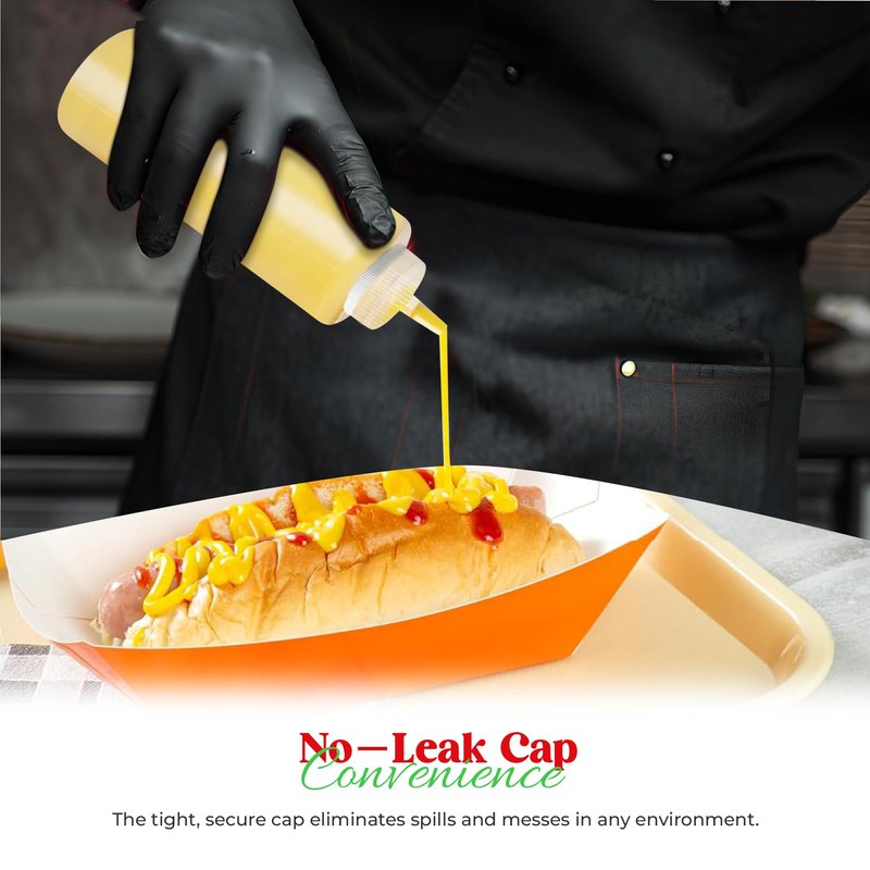 - Open Tip and Tight No-Leak Cap: The open tip design eliminates the need to cut the top, ensuring a ready-to-use bottle. The tight, no-leak cap prevents spills and messes, making these bottles a reliable choice for any foodservice environment.