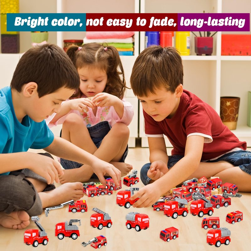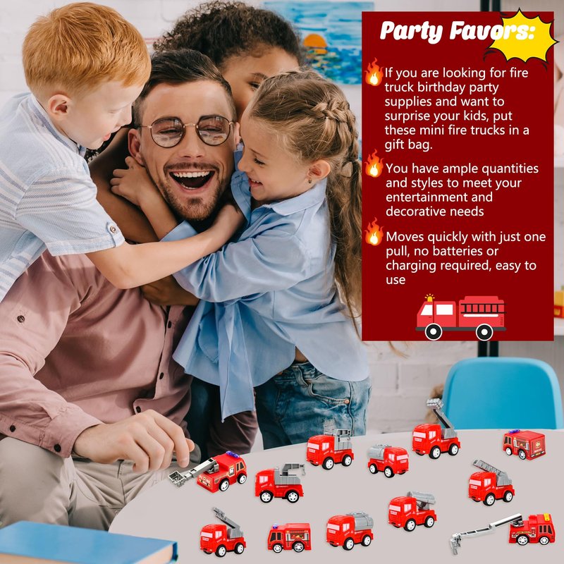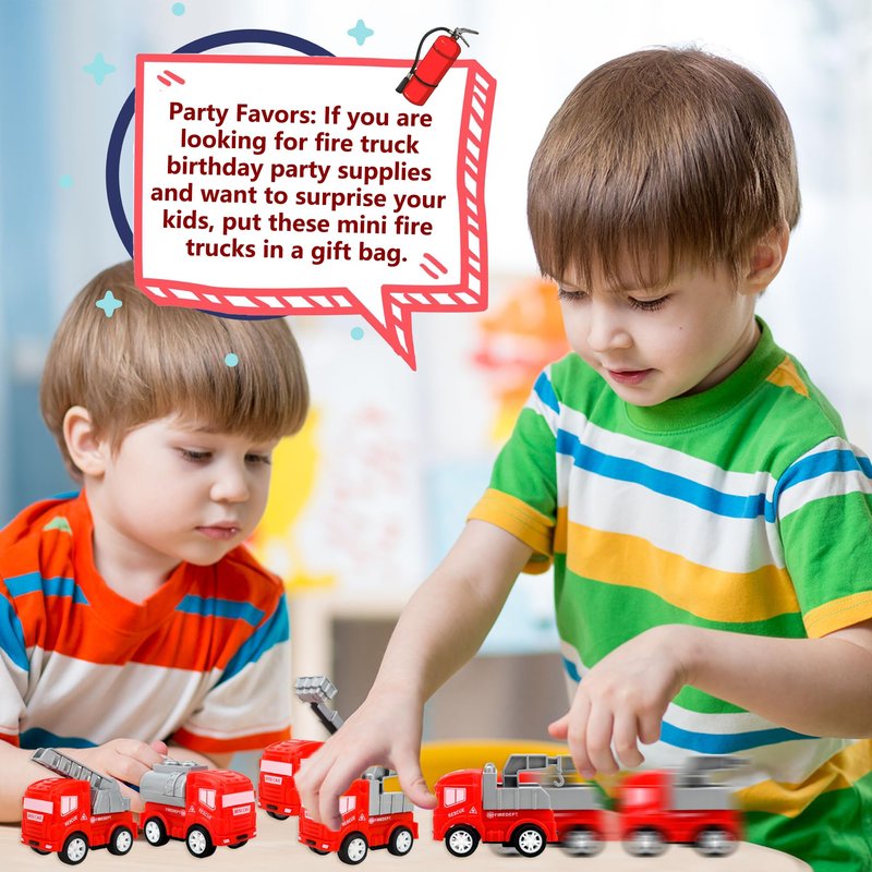 - 【Wide Application】: Small fire trucks toy not only encourages children to play actively at parties and activities, but also cultivates children's hands-on skills and makes children more aware of the responsibilities and hard work of firefighters. An ideal choice for kids birthday gift and stay at home toys etc.