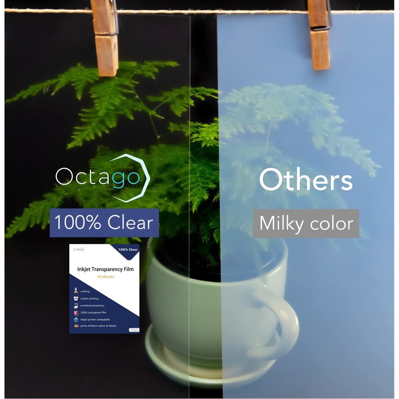 Octago Inkjet Transparency Paper (100% Clear) for Printers, Color Inkjet Transparency Film, Acetate Sheets for Crafts, Premium Print, Clear (8.5x11 Inches) - 30 Sheets